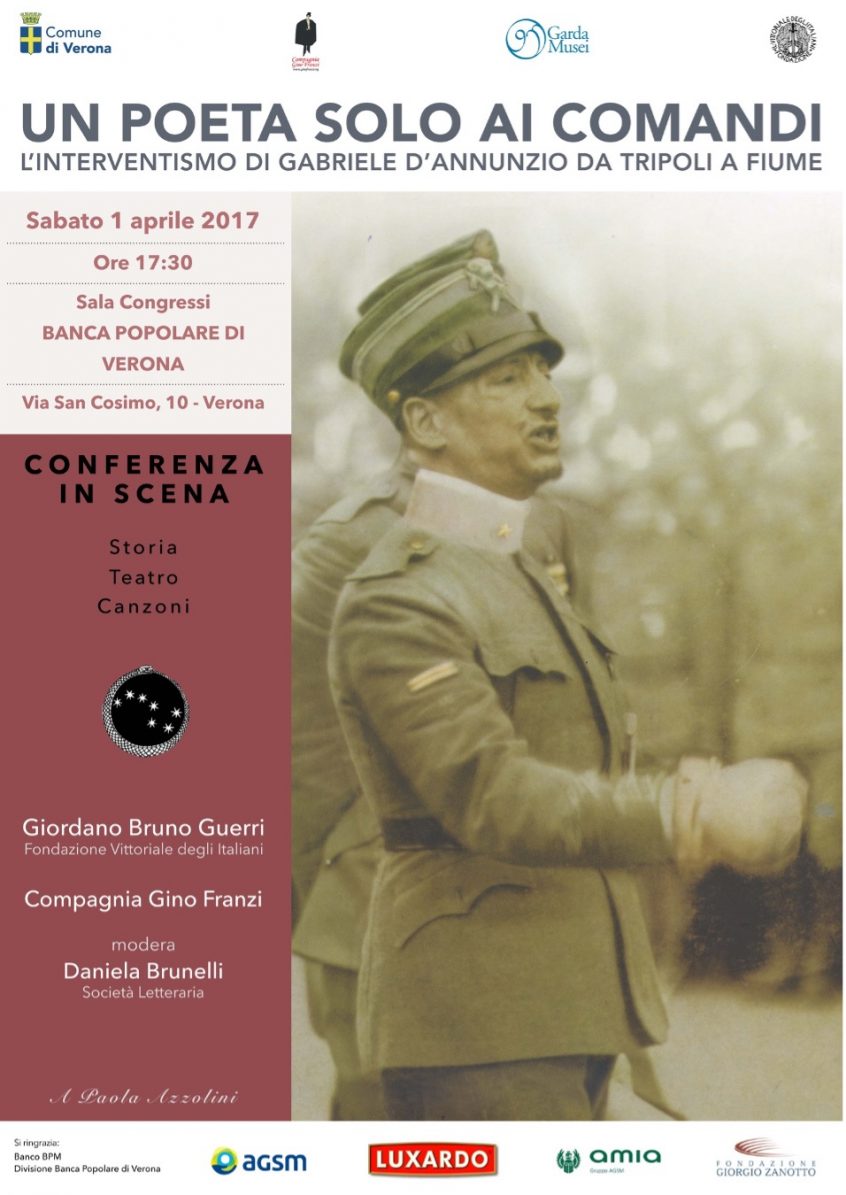 Un poeta solo ai comandi, l’interventismo di Gabriele d’Annunzio da Tripoli a Fiume. Sala dei 120 Banca Popolare Verona. Verona, 1 aprile 2017 Conferenza in scena con Giordano Bruno Guerri